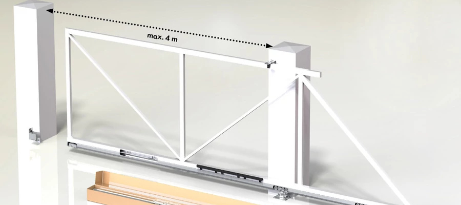 A tolókapu előnyei közé tartozik az egyszerűbb telepítés és a kedvezőbb beruházási költség.